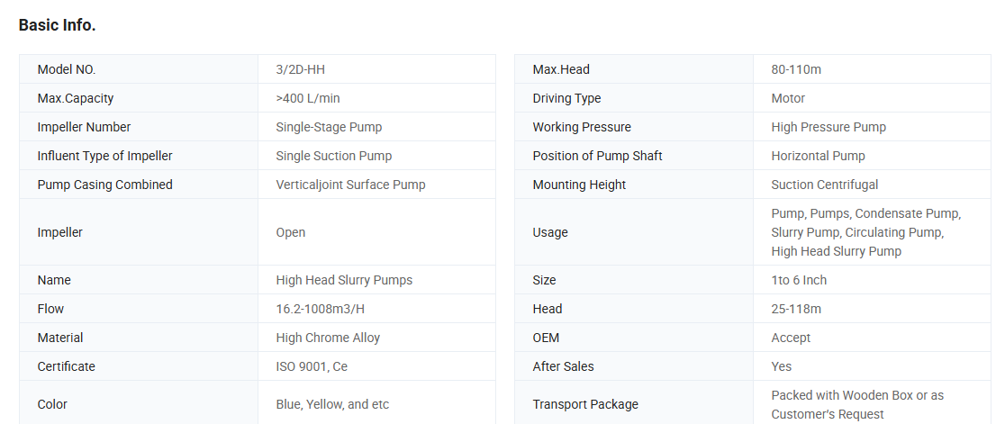 - Pump Model : 1.5/1C-HH 3/2D-HH 3/2DD-HH 4/3E-HH 4/3EE-HH 6/4F-HH 6/4FF-HH 6/4x- HH 6S-H 8/6S-H 8/6X-H 6S-HP 8/6S-HP 8/6X-HP